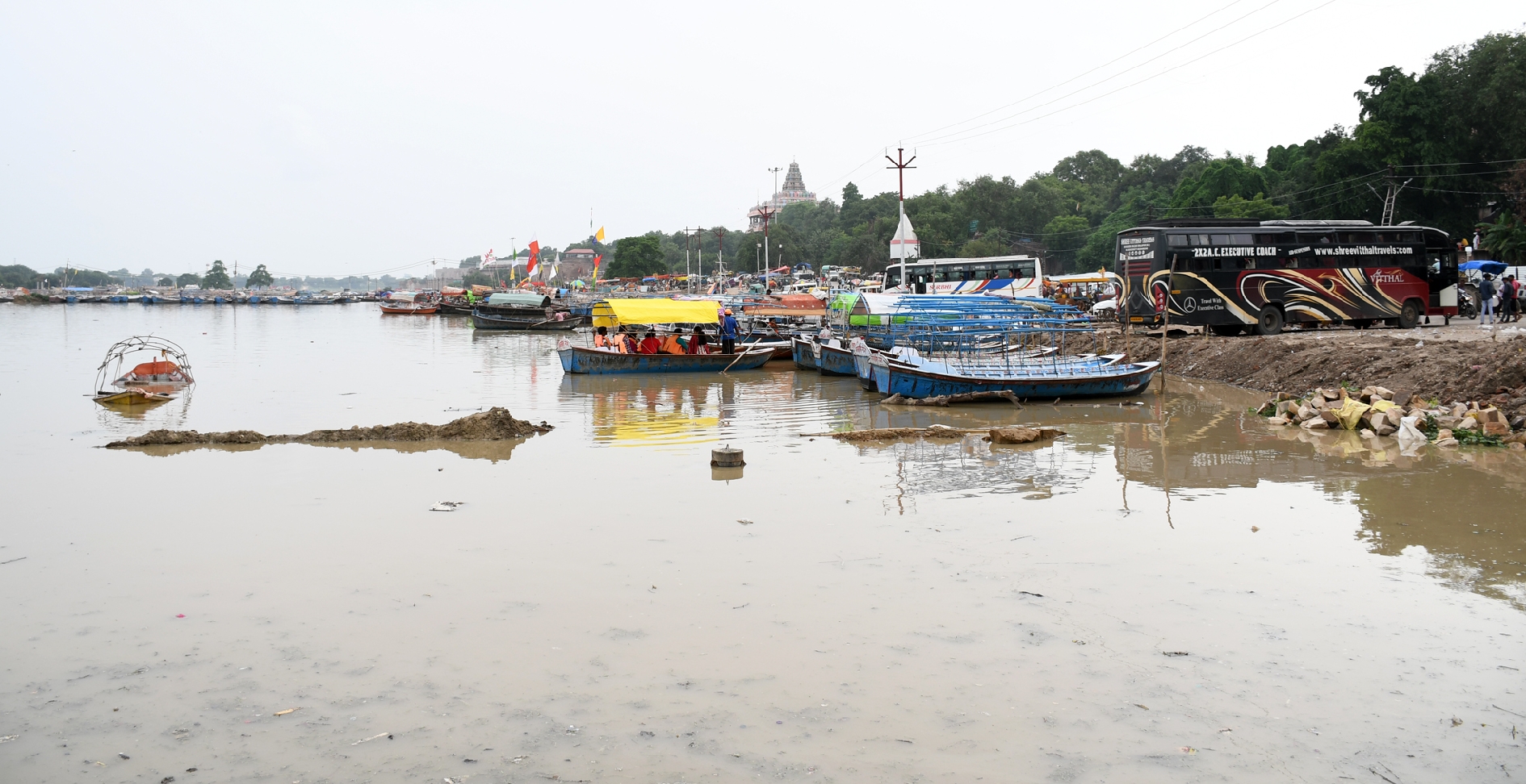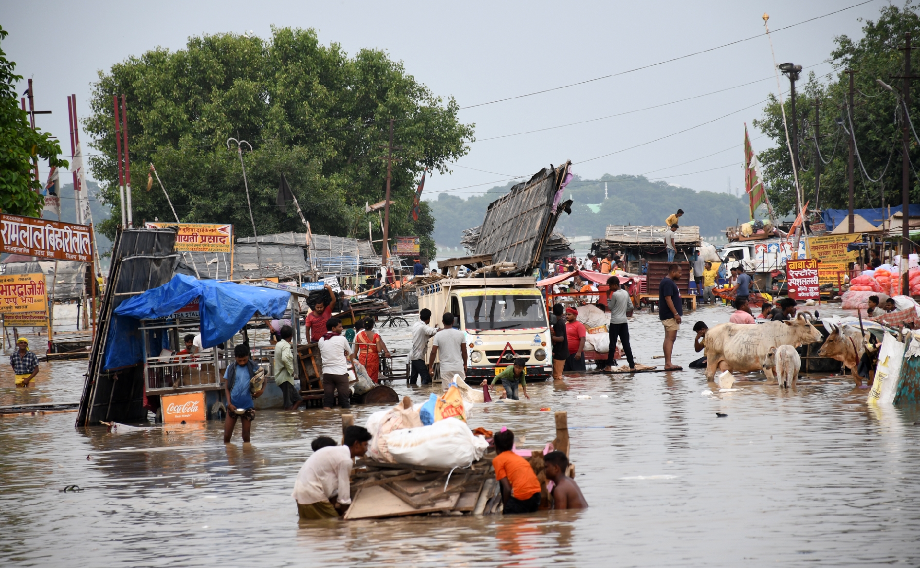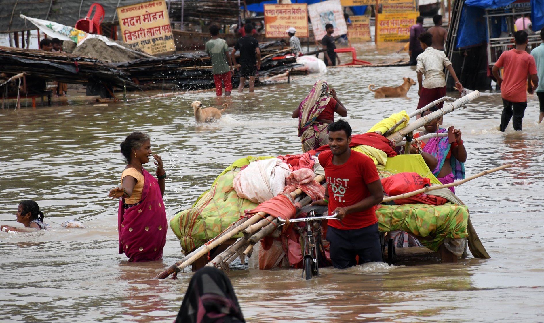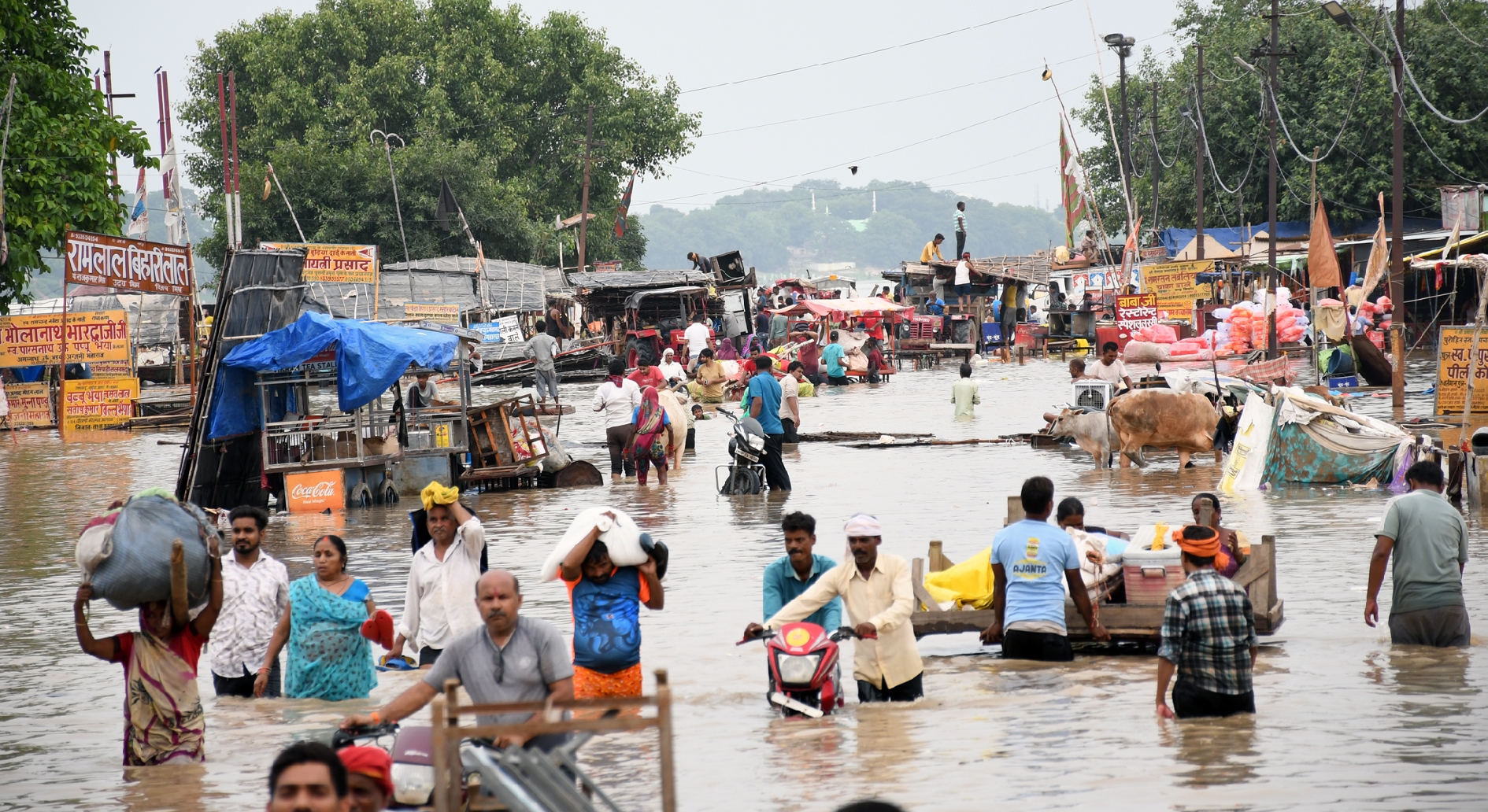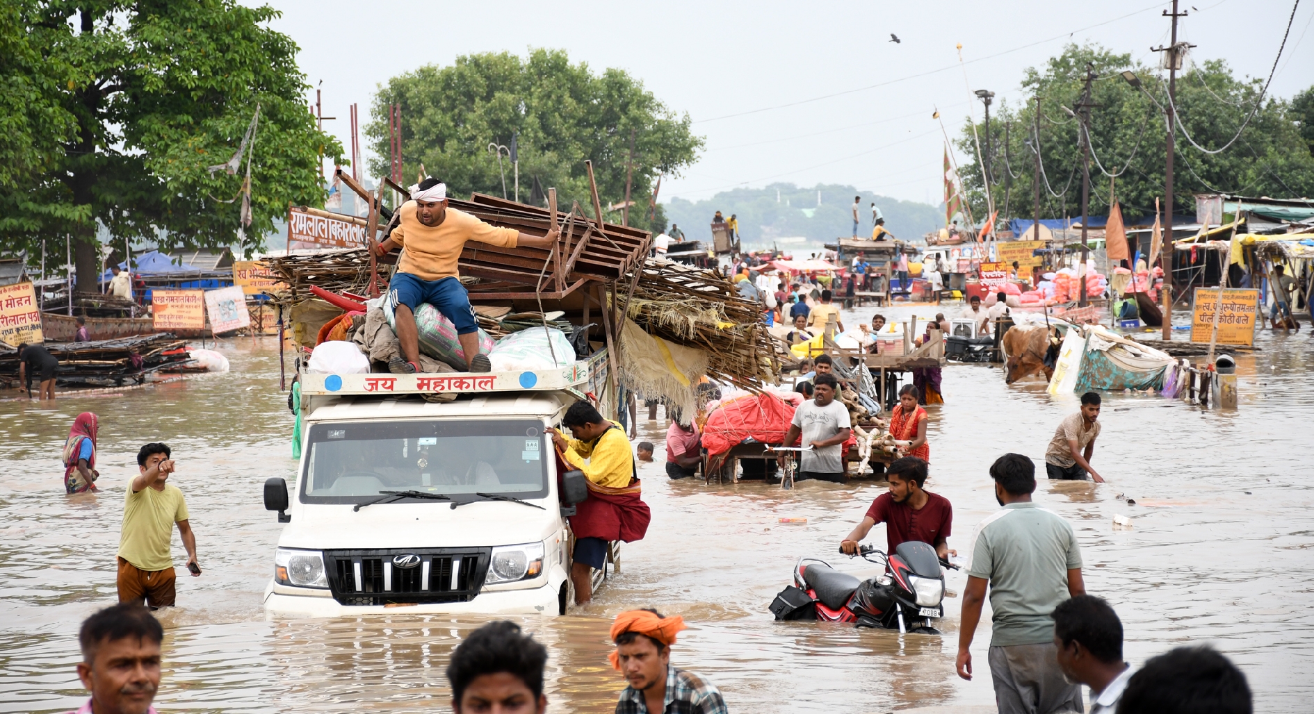 बता दें कि मंगलवार शाम के चार बजे थे। संगम के पास जगदीश रैंप मार्ग पर तीर्थ पुरोहित बालमुकुंद, विनय व यज्ञ नारायण प्रयागवाल तख्त के सामने सड़क पर खड़ी स्कूटी पर बैठे थे और देखते ही अचानक पानी बढ़ते उनके होश उड़ गए। जब तक वे स्कूटी से उतर कर अपने तख्त समेत अन्य सामान को ट्राली पर लोड कराते वहां घुटने भर पानी चढ़ गया।