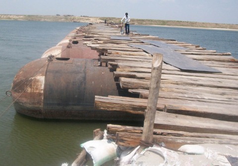 रविवार की सुबह हाइड्रा से पीपा उठाया जा रहा था इसी दौरान उसका संतुलन एकाएक गड़बड़ा गया। इससे वह गंगा में गिर गई। इसके चलते श्रमिक मुन्ना, राम अधार, श्रवण कुमार और लक्ष्मण को चोट लग गई।