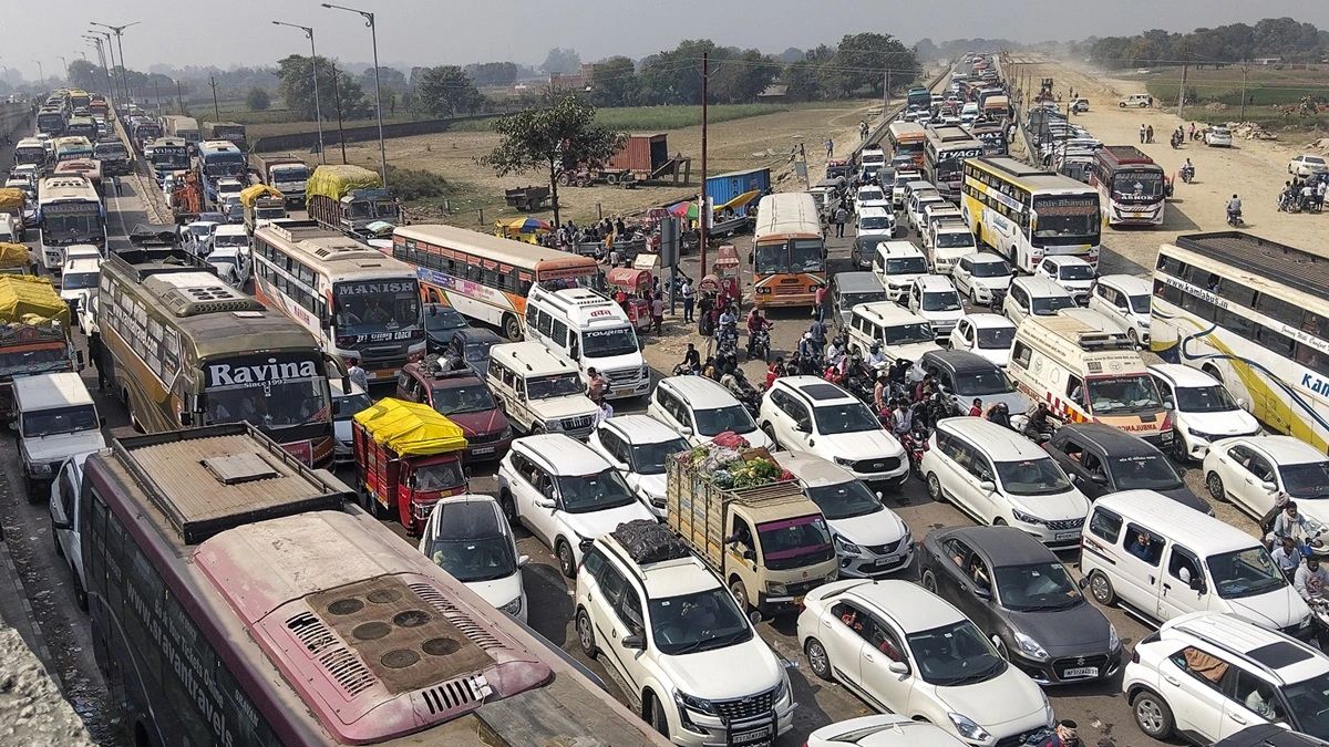 महाकुंभ में वीकेंड पर श्रद्धालुओं का सैलाब, 25 किलोमीटर लंबा जाम; रेंग रहीं गाड़ियां