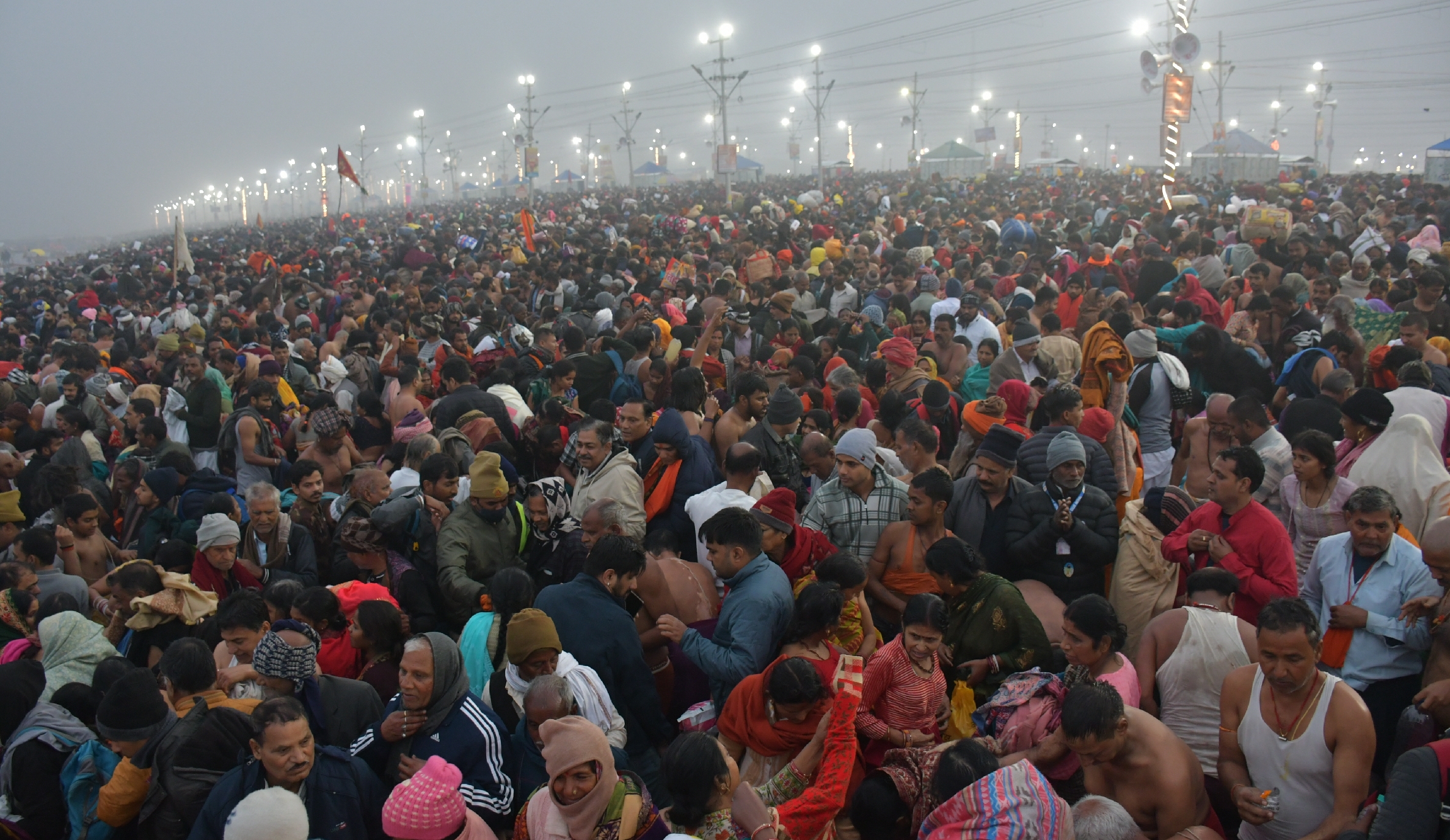 उधर सूर्य देवता अस्ताचल की ओर गए और इधर संगम तट पर बिजली के बल्बों की टिमटिमाहट ने स्वर्णिम जलराशि पर चांदनी बिखेर दी। जैसे दिन था, वैसे ही धीरे-धीरे गहराती रात में भी बस हर सड़क पर पैदल, बग्घी, हाथी, घोड़ा व पालकी पर सवार साधु, संत, सज्जन और दुर्जन भी अपने अंदाज में है। हर तरफ बस जन ही जन...ये उल्लास, ये आह्लादित करने वाले पल, क्षण यही कह रहे हैं ...ये महाकुंभ है।