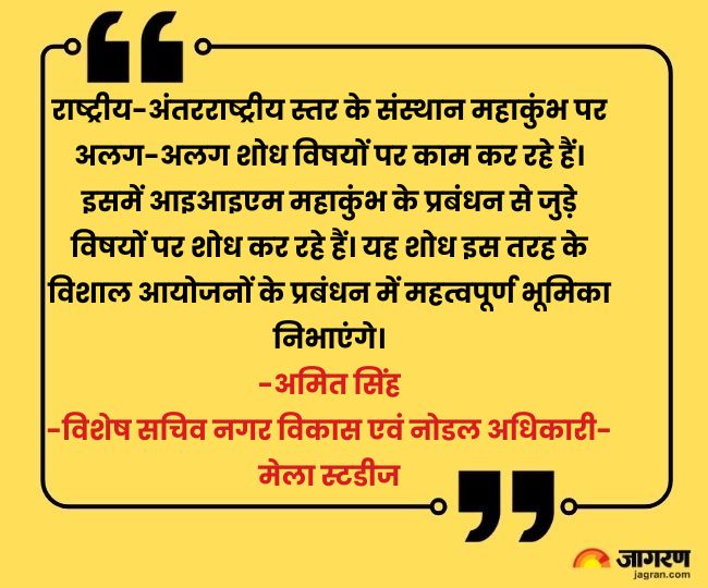 मृत्युंजय मिश्र, महाकुंभ नगर। Maha Kumbh Mela 2025 दुनिया का सबसे बड़ा धार्मिक और सांस्कृतिक आयोजन महाकुंभ मेला अपने ऐतिहासिक, आध्यात्मिक, आर्थिक और प्रबंधन प्रभावों के कारण देश-विदेश के शोधकर्ताओं का ध्यान आकर्षित कर रहा है। इस विशाल आयोजन के कुशल प्रबंधन, पर्यटन, मीडिया की भूमिका और सामाजिक प्रभावों का गहराई से अध्ययन करने के लिए देश के चार प्रमुख भारतीय प्रबंधन संस्थान (आइआइएम) इंदौर, आइआइएम बेंगलुरू, आइआइएम अहमदाबाद और आइआइएम लखनऊ ने विशेष शोध परियोजनाएं शुरू कर दी हैं।