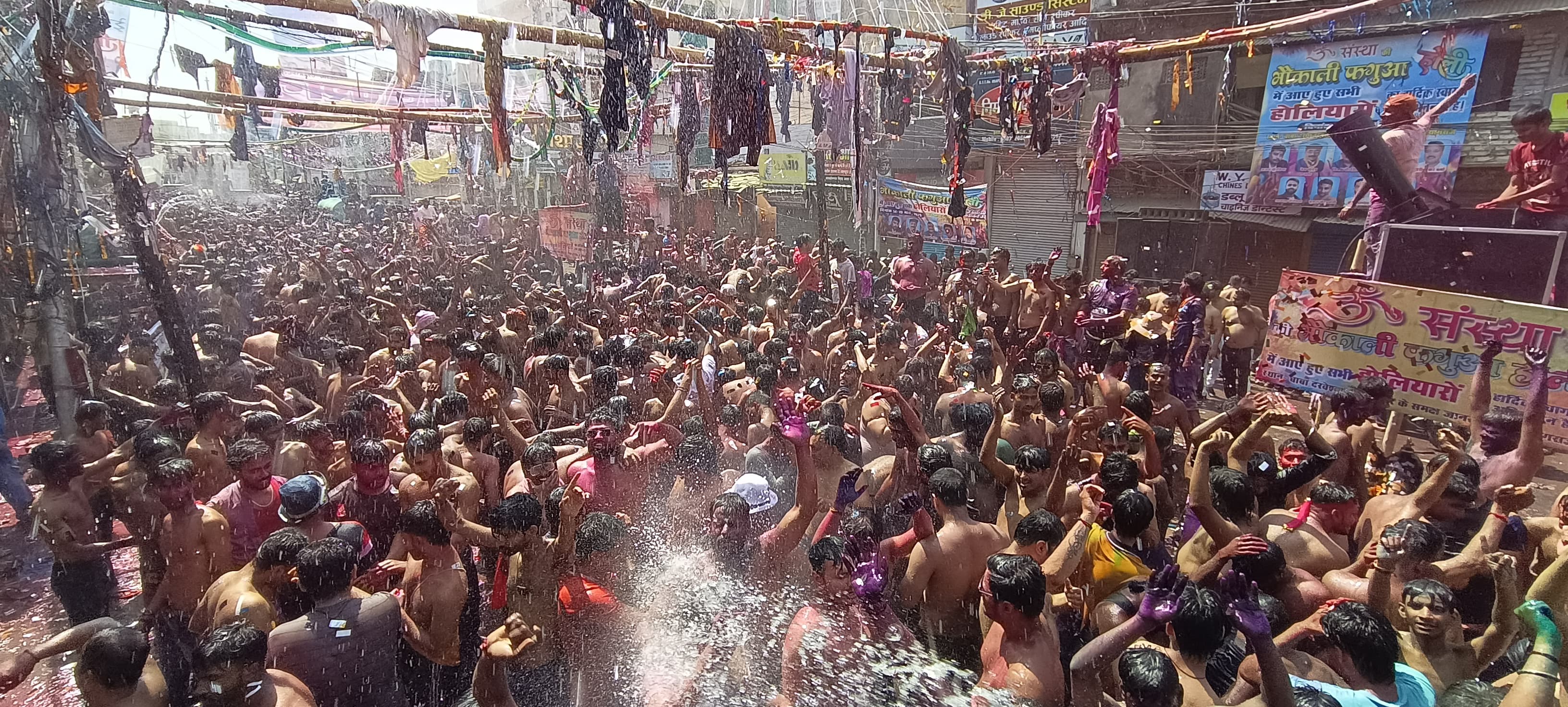 प्रयागराज में कपड़ा फाड़ होली खेलते लोग।- जागरण