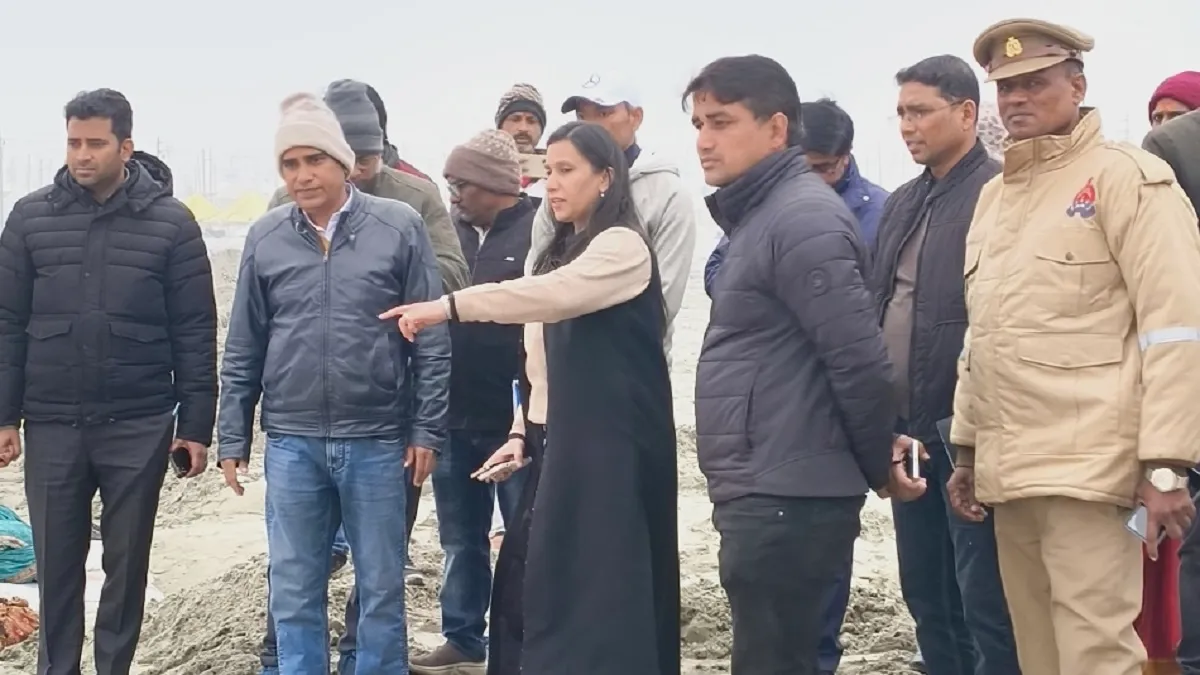 Magh Mela 2026 प्रयागराज माघमेला की तैयारियों का निरीक्षण करतीं मंडलायुक्त सौम्या अग्रवाल। सौजन्य : सूचना विभाग