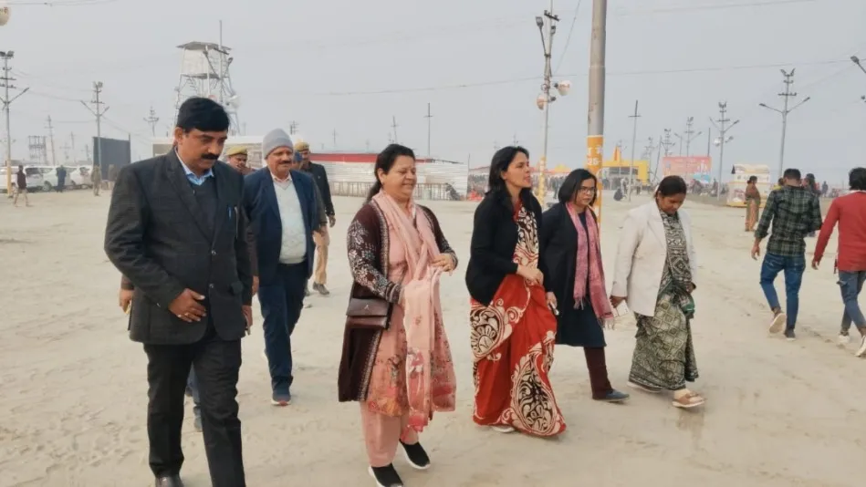 माघ मेला क्षेत्र में विभागीय तैयारी देखने पहुंचीं खाद्य सुरक्षा आयुक्त डॉ रोशन जैकब।