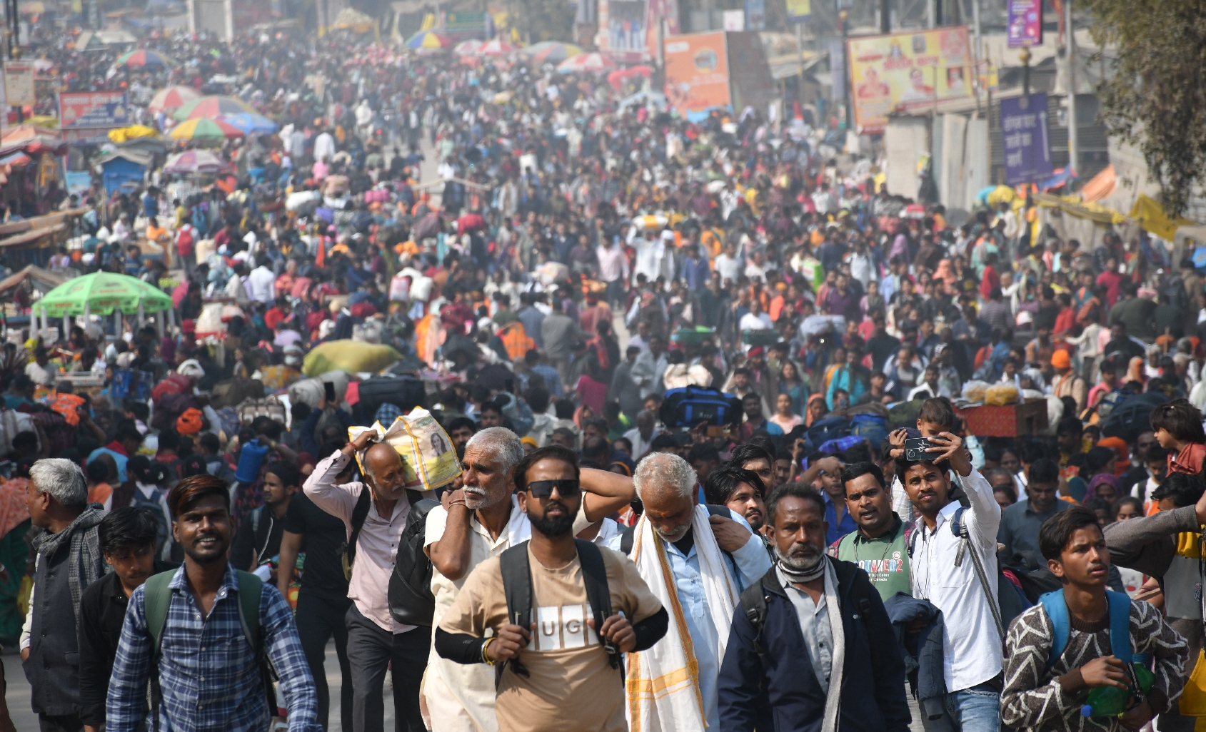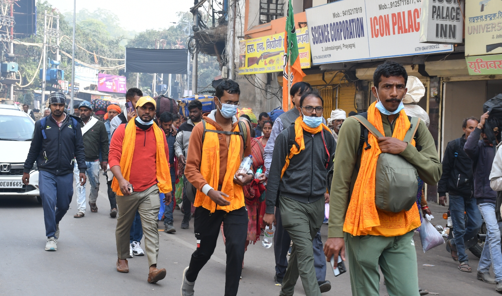 Maha Kumbh Mela 2025 के काली मार्ग से गुजरते श्रद्धालु। -गिरीश श्रीवास्तव