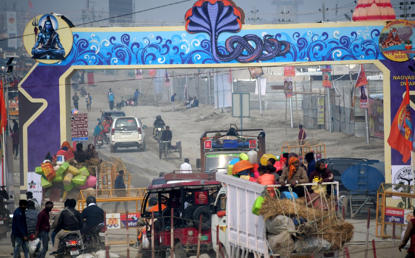 Maha Kumbh Mela 2025 नगर सेक्टर 6 से गुजरते श्रद्धालुओं के वाहन।-जागरण