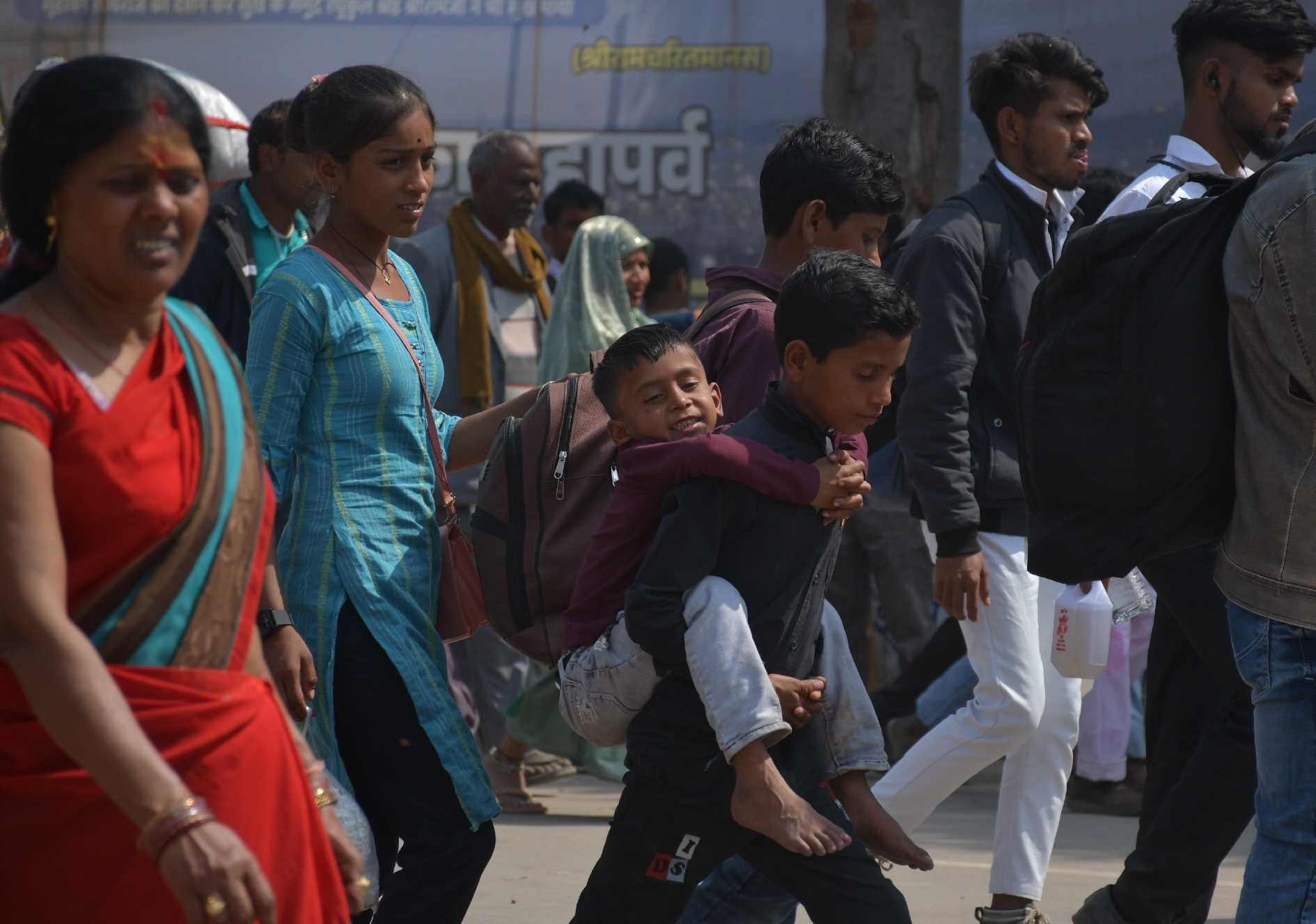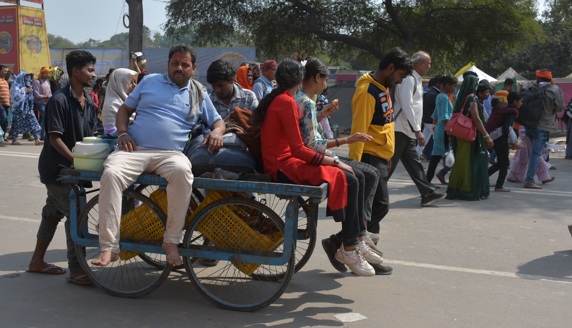 Maha Kumbh Mela के त्रिवेणी मार्ग से जाते श्रद्धालु।-गिरीश श्रीवास्तव
