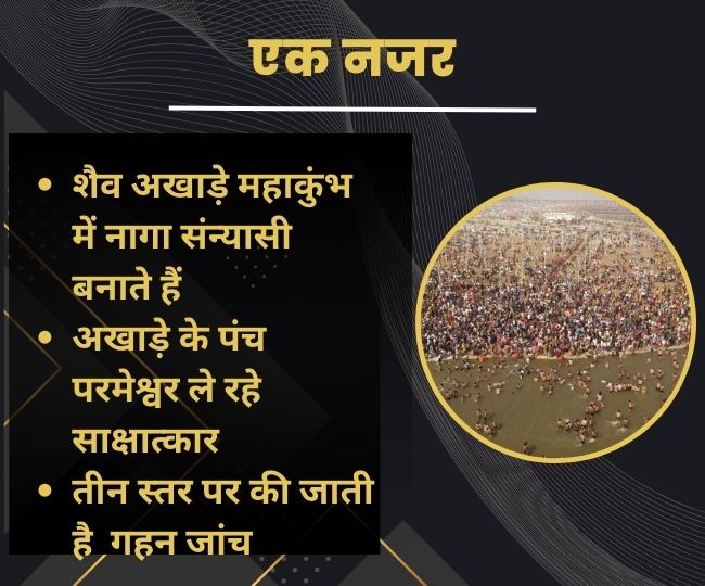 शैव अखाड़े महाकुंभ में नागा संन्यासी बनाते हैं। उन्हें अखाड़े से जोड़कर सनातन धर्म के कार्यों में लगाया जाता है। महाकुंभ के दूसरे अमृत स्नान मौनी अमावास्या से पहले अखाड़ों में नागा संन्यासी बनाए जाएंगे। अखाड़े के पंच परमेश्वर उनका साक्षात्कार ले रहे हैं।