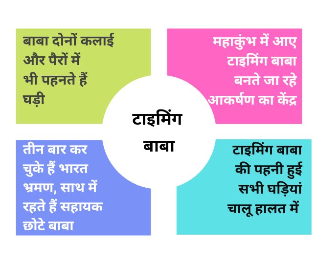 Maha Kumbh 2025 महाकुंभ 2025 में मिलिए अनोखे टाइमिंग बाबा से जो अपनी दोनों कलाईयों और पैरों में कई घड़ियां पहनते हैं। टाइमिंग बाबा आकर्षण का केंद्र बनते जा रहे हैं। जानिए उनके इस अनोखे पहनावे के पीछे की कहानी और भारत भ्रमण के दौरान लोगों को समय के महत्व का संदेश देने के उनके मिशन के बारे में।