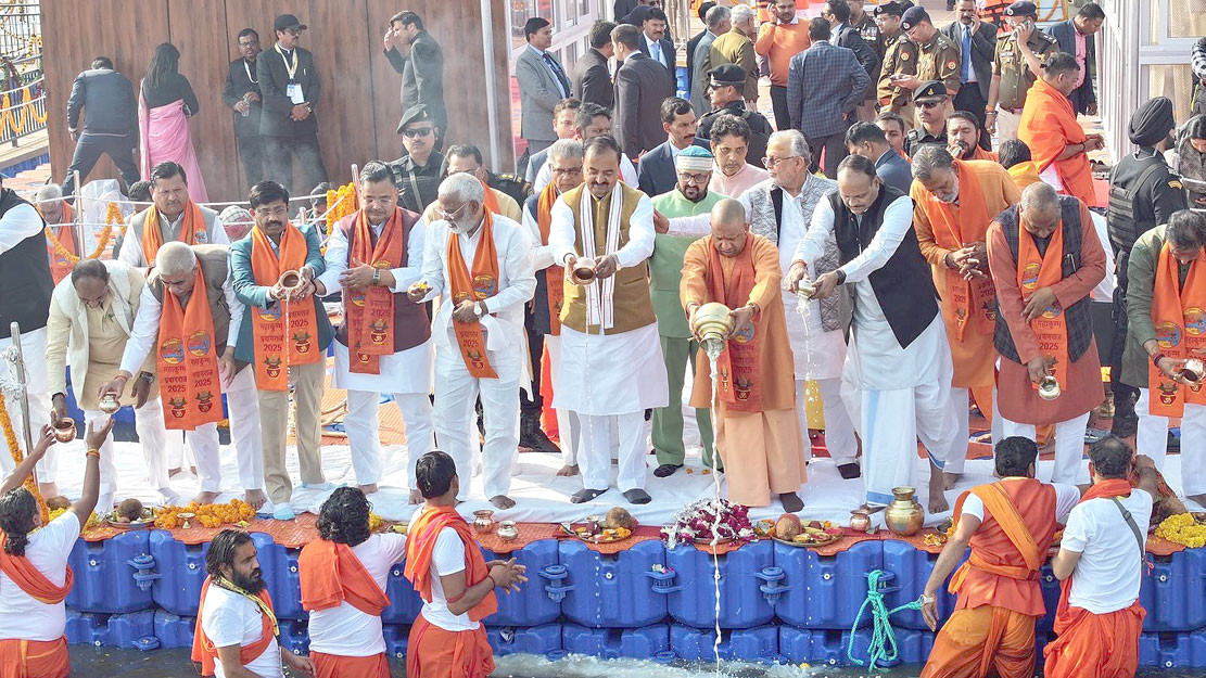MahaKumbh: मंत्रियों संग मुख्यमंत्री योगी ने संगम में लगाई डुबकी, पवित्र स्नान के बाद किया पूजन