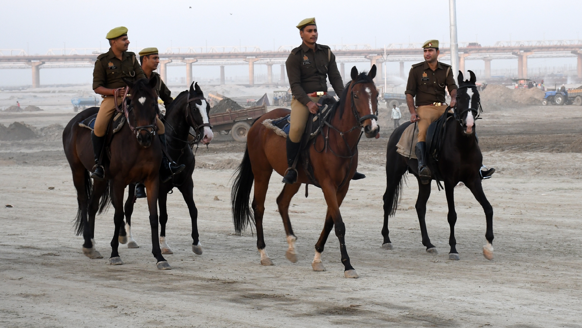 मुख्यमंत्री आगमन को लेकर संगम क्षेत्र में घुड़सवार पुलिस। जागरण