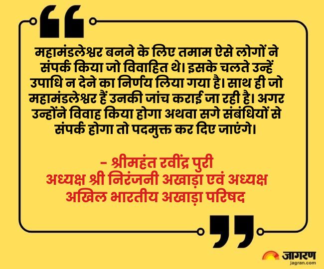 महामंडलेश्वर बनने वाले को वर्षभर अथवा छह माह पूर्व घर-गृहस्थी छोड़कर किसी मठ-मंदिर से जुड़ना होता है। इसके जरिए साबित करना पड़ता है कि उनका परिवार के लोगों से संबंध नहीं है, लेकिन जूना अखाड़ा से 34, श्रीनिरंजनी अखाड़ा से 26, निर्मोही अनी अखाड़ा से 12, निर्वाणी अनी अखाड़ा से सात ऐसे लोगों ने महामंडलेश्वर बनने के लिए संपर्क किया जो परिवार के साथ रहते थे। उनकी पत्नी, बच्चे थे। जांच में पता चला कि वो सामाजिक रसूख व धनार्जन के लिए महामंडलेश्वर बनना चाहते थे।