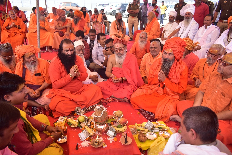 देवों के आह्वान के साथ पांच अखाड़ों ने किया भूमि पूजन