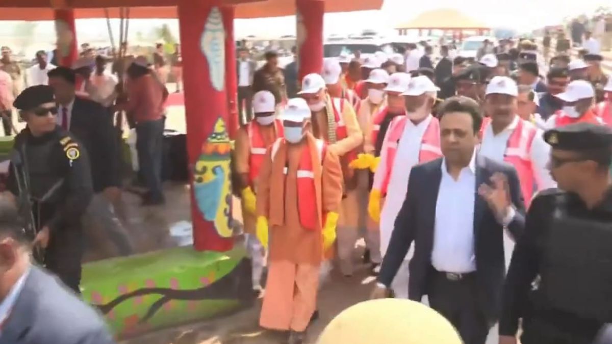 स्वच्छता कर्मियों, नविकों व पुलिसकर्मियों को सम्मानित करने समारोह स्थल पहुंचे सीएम योगी।