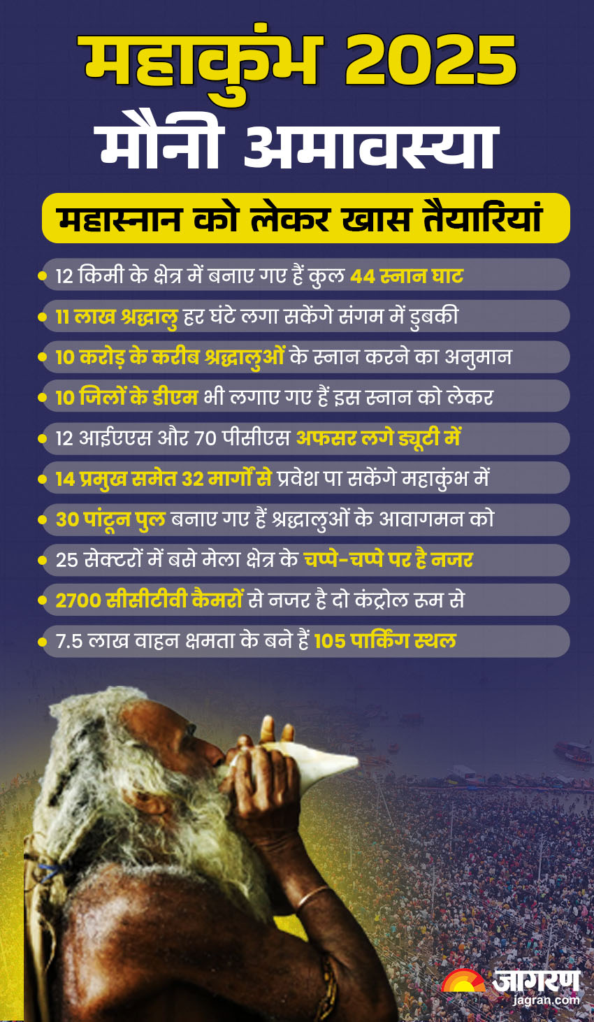 महाकुंभ के सबसे बड़े स्नान पर्व मौनी अमावस्या के अमृत स्नान पर 10 करोड़ से अधिक श्रद्धालुओं के आने का अनुमान है। किसी भी श्रद्धालु को असुविधा न हो, इसके लिए शासन-प्रशासन ने जबरदस्त इंतजाम किए हैं। लगभग 12 किलोमीटर के क्षेत्र में विकसित सभी 44 घाटों पर स्नान कराने की तैयारी है।