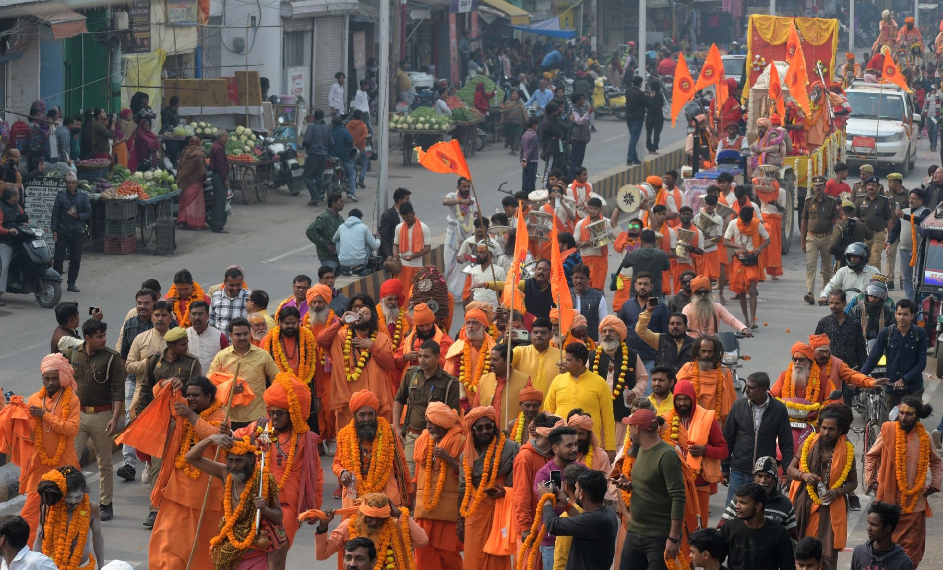 Maha Kumbh 2025: चकिया मोहल्ले से गुजरता श्री शंभू पंच अग्नि अखाड़ा की छावनी प्रवेश जुलूस में शामिल संत-महात्मा। जागरण