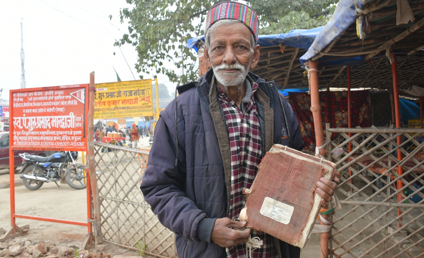 संगम क्षेत्र में दो सौ साल पुरानी बही दिखाते तीर्थ पुरोहित संतोष भारद्वाजी।-जागरण