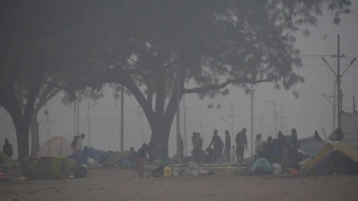 Prayagraj Weather Forecast प्रयागराज में कोहरे का कहर, संगम क्षेत्र के परेड मैदान पर पेड़ के नीचें एकत्र श्रद्धालु। जागरण