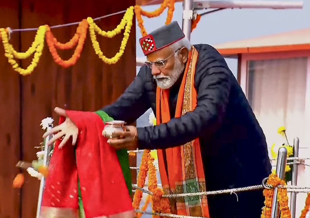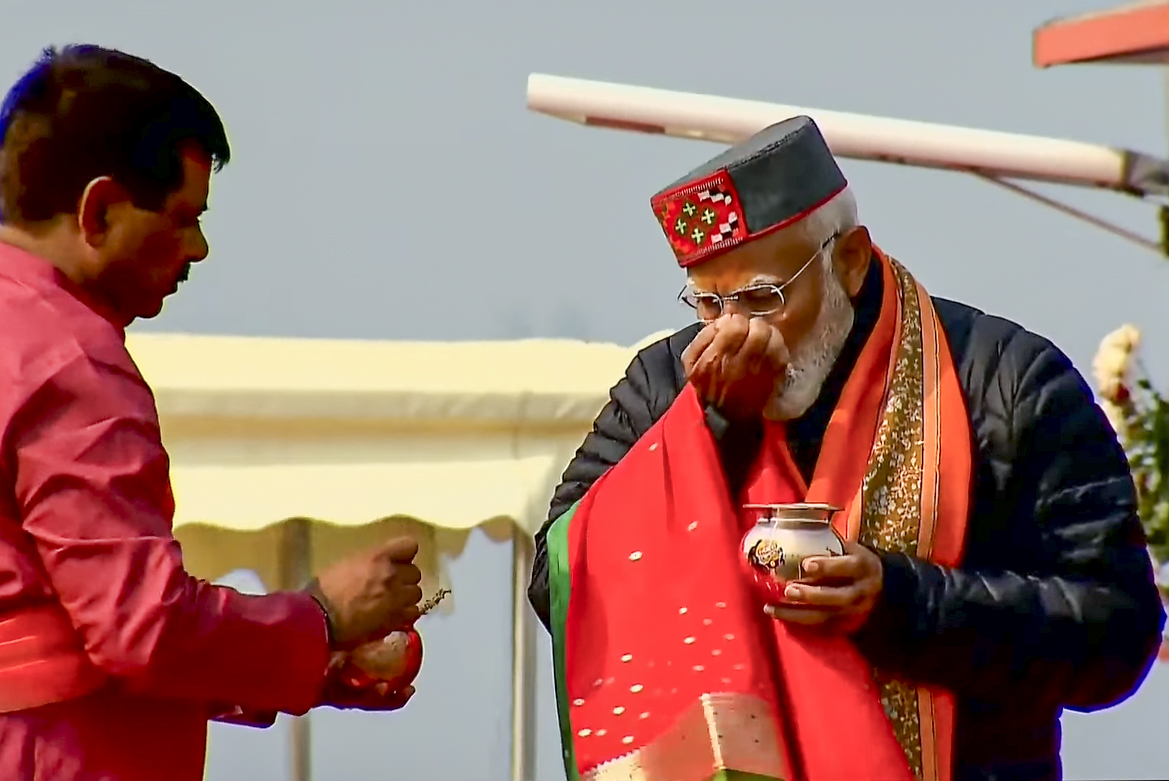 आचमन करते पीएम मोदी। पीटीआई