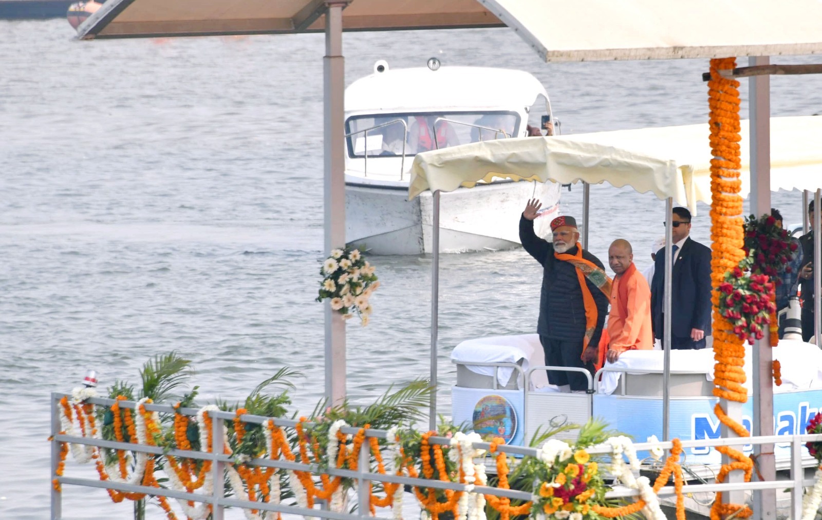 मोदी ने मुख्यमंत्री योगी आदित्यनाथ के साथ नाव की सवारी करके त्रिवेणी संगम - गंगा, यमुना और पौराणिक सरस्वती के संगम तक पहुंचे।