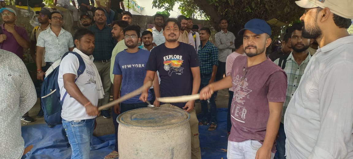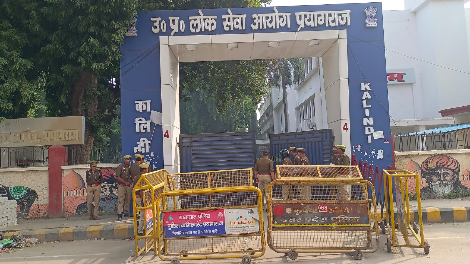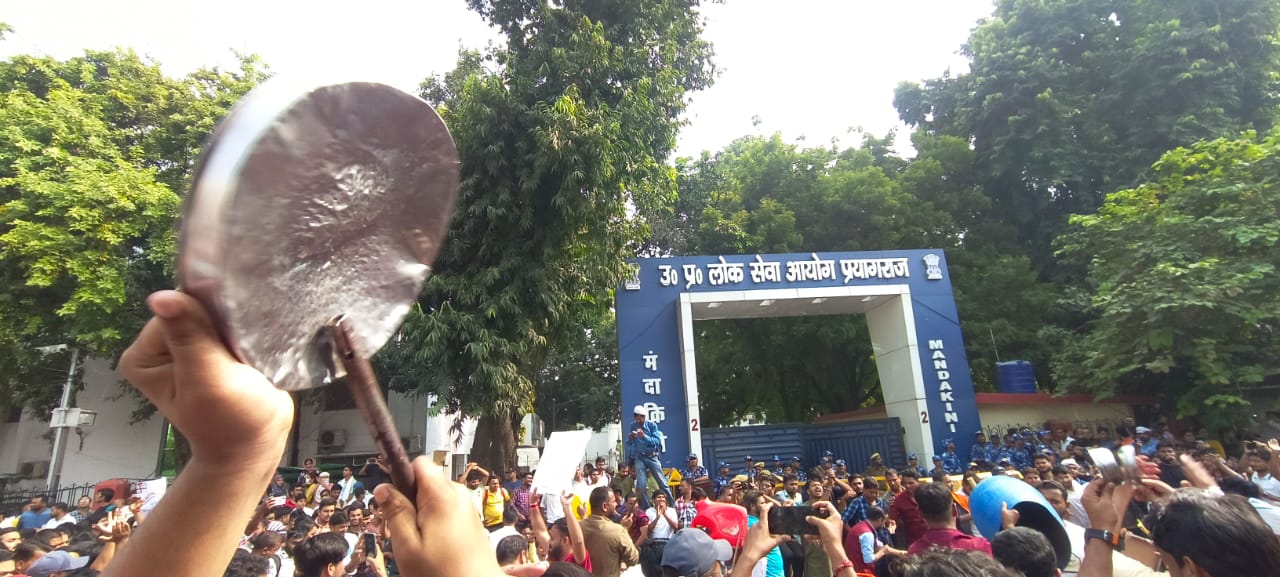 प्रयागराज में दूसरे दिन भी छात्रों का प्रदर्शन जारी, थाली और ड्रम बजाकर कर रहे नारेबाजी; पुलिस बल तैनात