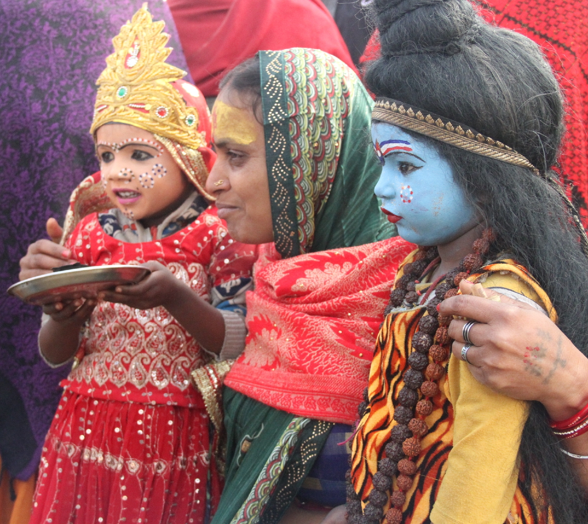 कुंभ के रंग: संगम तट पर सब रंग है। मनमोहक बाल लीला के रूप में भगवान शंकर व पार्वती के मनमोहक रूप को देख महिला गले से लगाने को विवश हो उठी। -अभिनव राजन चतुर्वेदी।