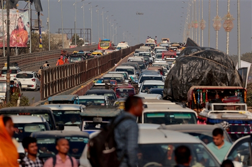कुंभ मेला: 300 KM लंबे जाम से थम गए पहिए, श्रद्धालुओं को खाने-पीने की परेशानी, टोल नाकों पर वाहनों का जमघट