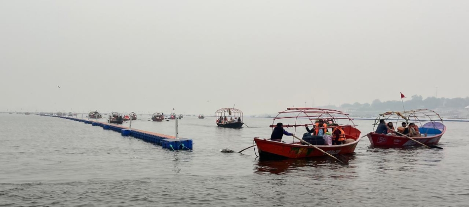 Maha Kumbh Mela 2025: महाकुंभ के मद्देनजर यमुना में डीप वाटर बैरिकेडिंग करके अलग-अलग बनाए गए जलमार्ग। जागरण
