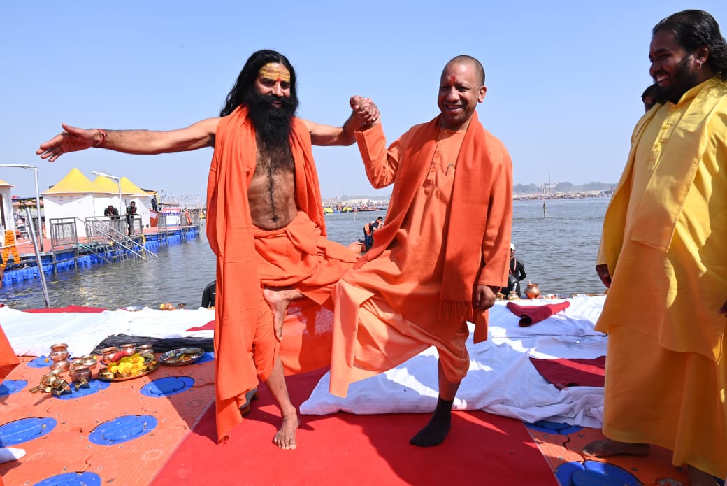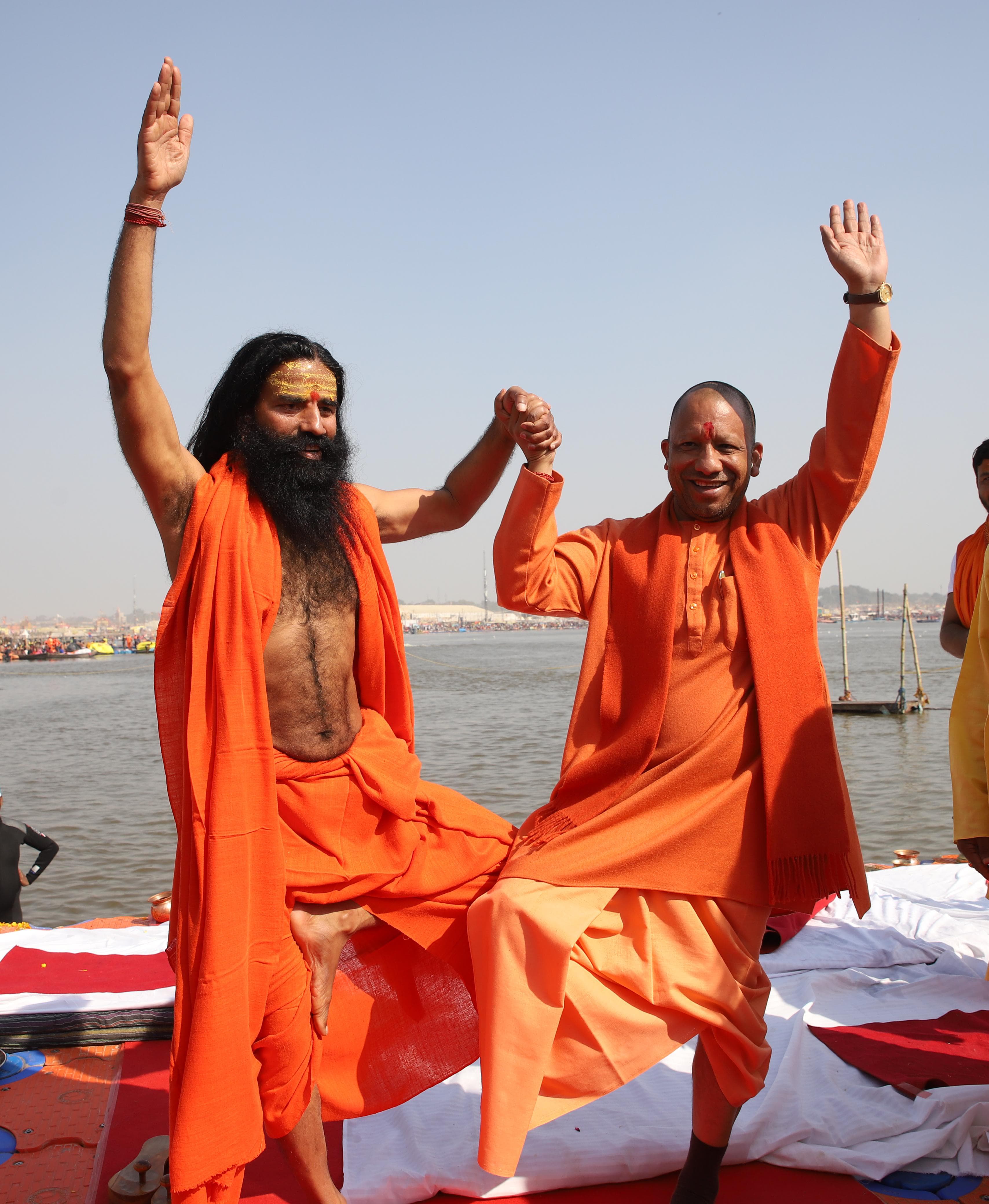 योग गुरु बाबा रामदेव ने सीएम योगी के साथ संगम में स्नान किया।