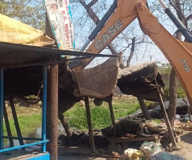 नगर पालिका द्वारा अजीतपुर में अभियान चलाकर हटवाया गया अतिक्रमण। जागरण