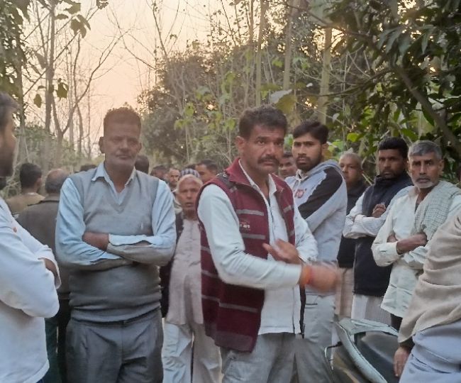 घटनास्थल पर गमजदा खड़े ग्रामीण। जागरण