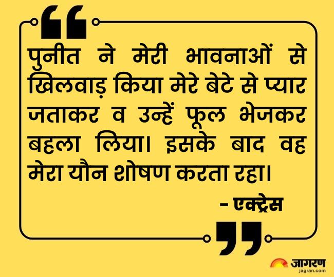 आरोप लगाया था कि पुनीत ने उनकी भावनाओं से खिलवाड़ किया और उनके बेटे से प्यार जताकर व उन्हें फूल भेजकर बहला लिया। इसके बाद उनका यौन शोषण करता रहा। बाद में उन्हें पता चला कि पुनीत के दूसरी महिलाओं से भी संबंध हैं और उसने उनके साथ धोखा किया है।
