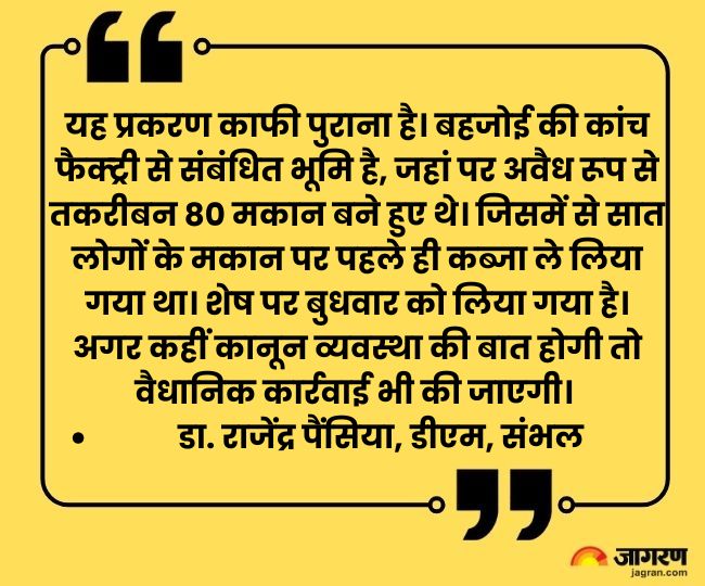 - चार सितंबर को भी चंदौसी के तहसीलदार और पुलिस बहजोई के मोहल्ला बाग फैक्ट्री कॉलोनी में पहुंची थी, जहां लोगों को सूचना दी गई थी कि वह जल्द से जल्द अपने घर खाली करें और खाली पड़े मकान में ताला लगाकर सील करने की कार्रवाई भी की गई थी।