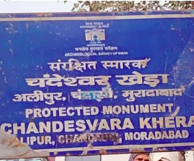 स्मारक - 2 चंदेश्वर मंदिर के बोर्ड पर लिखा मुरादाबाद, 65 बीघा भूमि पर हो गया अवैध कब्जा