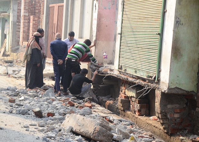 मुस्लिम आबादी में घरों के आगे गरजा बुलडोजर, लोग खुद ही तोड़ने लगे अवैध निर्माण… तैनात रहा भारी पुलिस बल