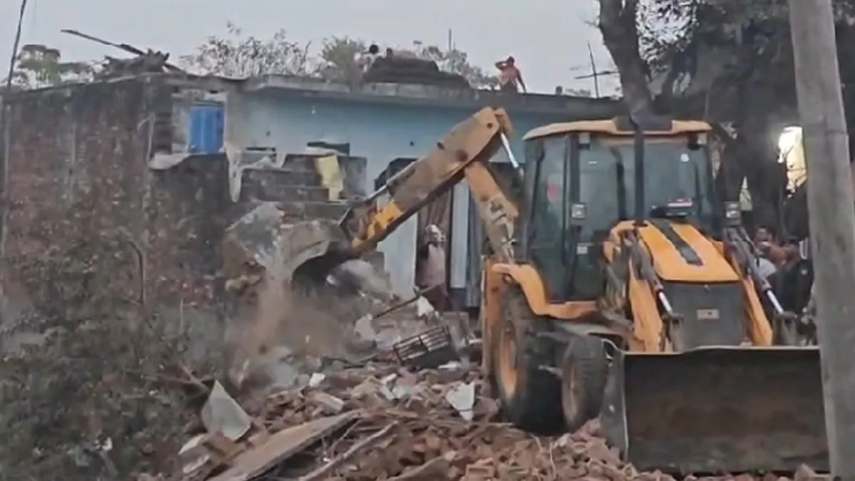 अवैध निर्माण ढहाता बुलडोजर