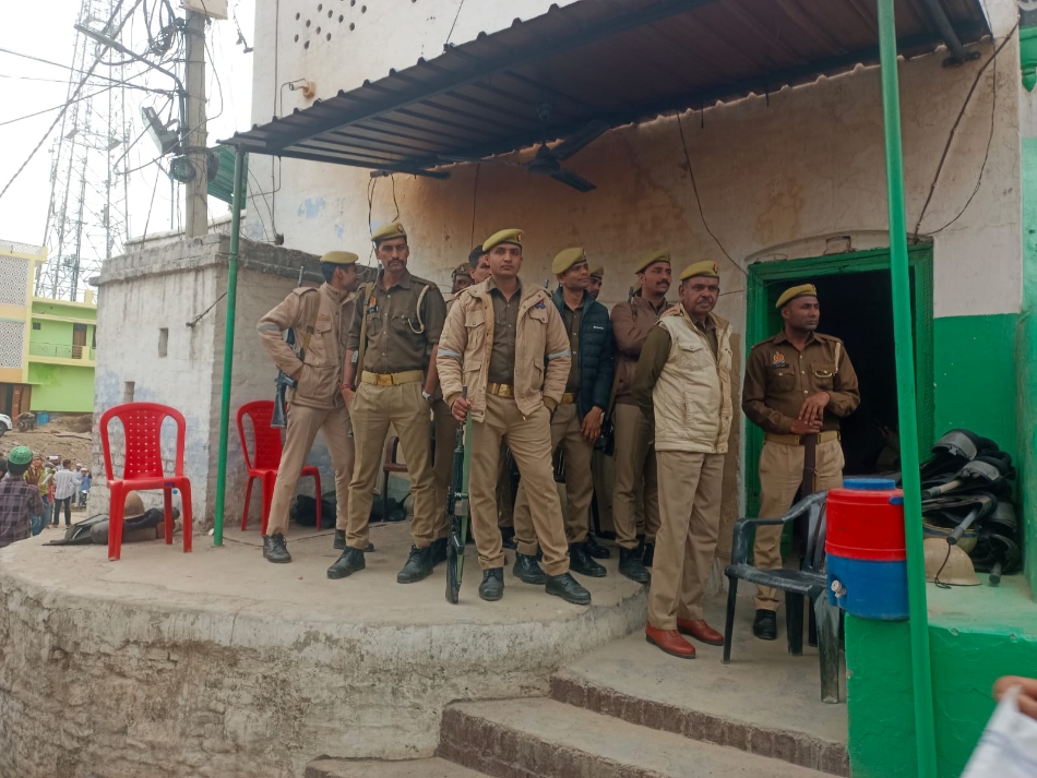 संभल जामा मस्जिद में नमाज के दौरान तैनात पुलिस बल।