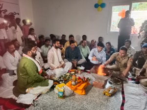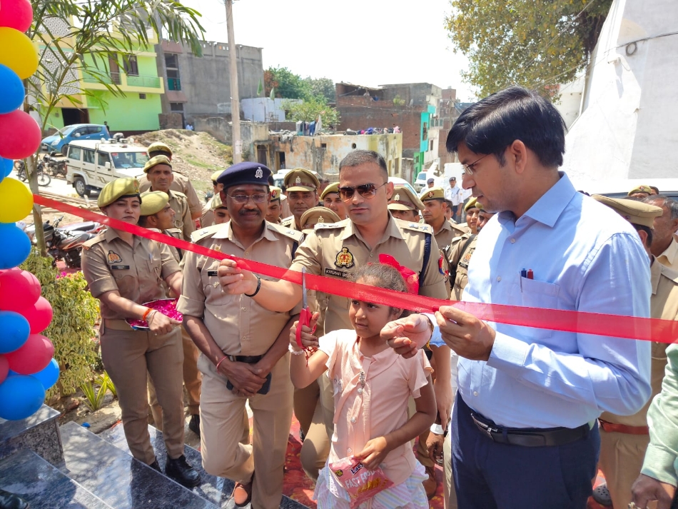दोपहर 1 बजकर सात मिनट पर जिलाधिकारी डॉ. राजेंद्र पैंसिया और पुलिस अधीक्षक कृष्ण कुमार की मौजूदगी में छोटी बच्ची गुनगुन ने फीता काटा। डीएम एसपी ने मंत्रोच्चारण के बीच आचार्य पंडित शोभित शास्त्री पंडित विशाल द्वारा कराए गए गौरी-गणेश और वास्तु मंडल देवताओं का पूजन किया। हवन में आहुतियां दी गईं।