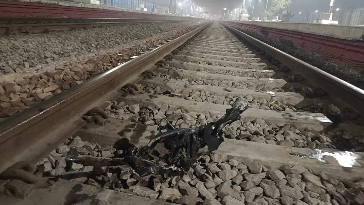 हादसे के बाद रेलवे ट्रैक पर पड़ा बाइक का टुकड़ा