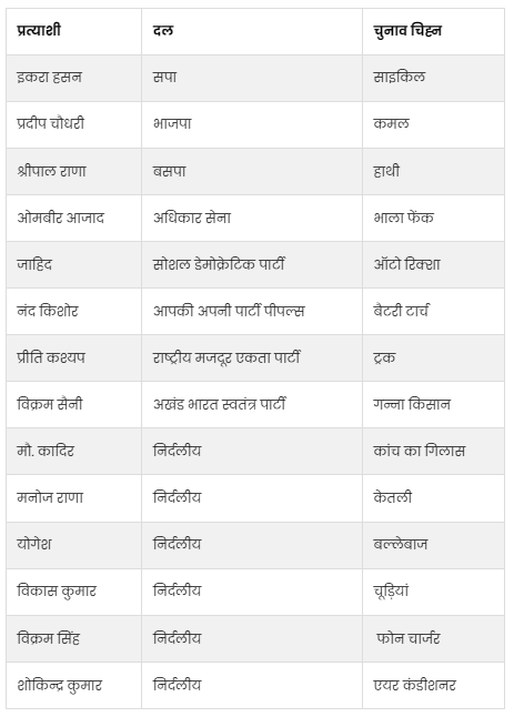 कैराना सीट से 14 प्रत्याशी (Kairana Seat 2024 Candidate)