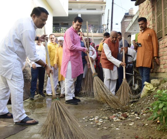 प्रभारी मंत्री ने झाड़ू लगाकर किया सेवा पखवारा का शुभारंभ
