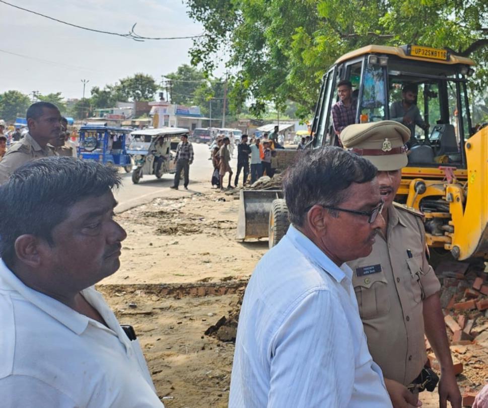 सीतापुर: नैपालापुर में अतिक्रमण हटाने के दौरान मौजूद पुलिस व टीम : जागरण