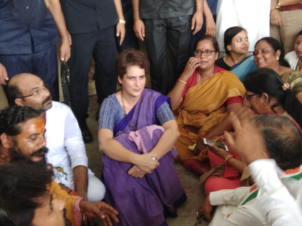 मिर्जापुर में धरने पर बैठीं प्रियंका गांधी, कहा- सोनभद्र के पीड़ितों से मिले बिना नहीं जाऊंगी