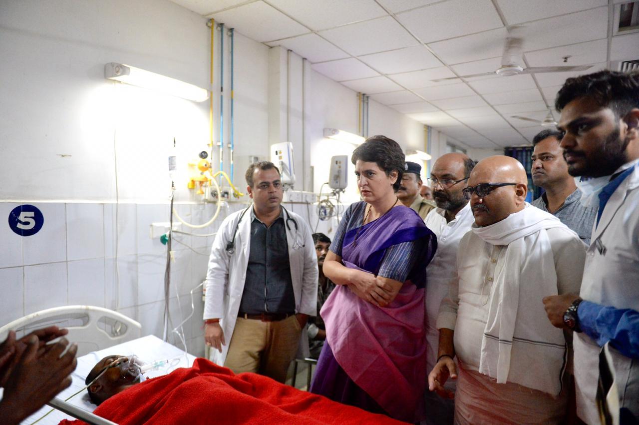 उसके बाद प्रियंका ने घायल जयप्रकाश से और पिता संतलाल की तरफ देखा और कहा कि घबराइए मत जल्द ही ठीक हो जाएगा तो संतलाल ने घायल पत्नी सुखवंती को दिखाते हुए कहा कि पत्नी है, कहते हुए गला रुंध गया।प्रियंका ने ढांढस देते हुए कहा कि पूरी मदद होगी आपलोगों की। घायल महेंद्र के भाई नंदलाल से भी प्रियंका ने पूछा कि कोई दिक्कत तो नही है आप लोगों के इलाज में। घायल नागेंद्र से मिलने के बाद प्रियंका कुछ देर वार्ड में घायलों को देखती रहीं। परिजन भी उम्मीद लगाए देख रहे थे कि प्रियंका जी कुछ मदद की घोषणा करेंगी लेकिन प्रिंयका अपनी भावनाओं को अंदर लिए वार्ड से बाहर निकल गर्इं।