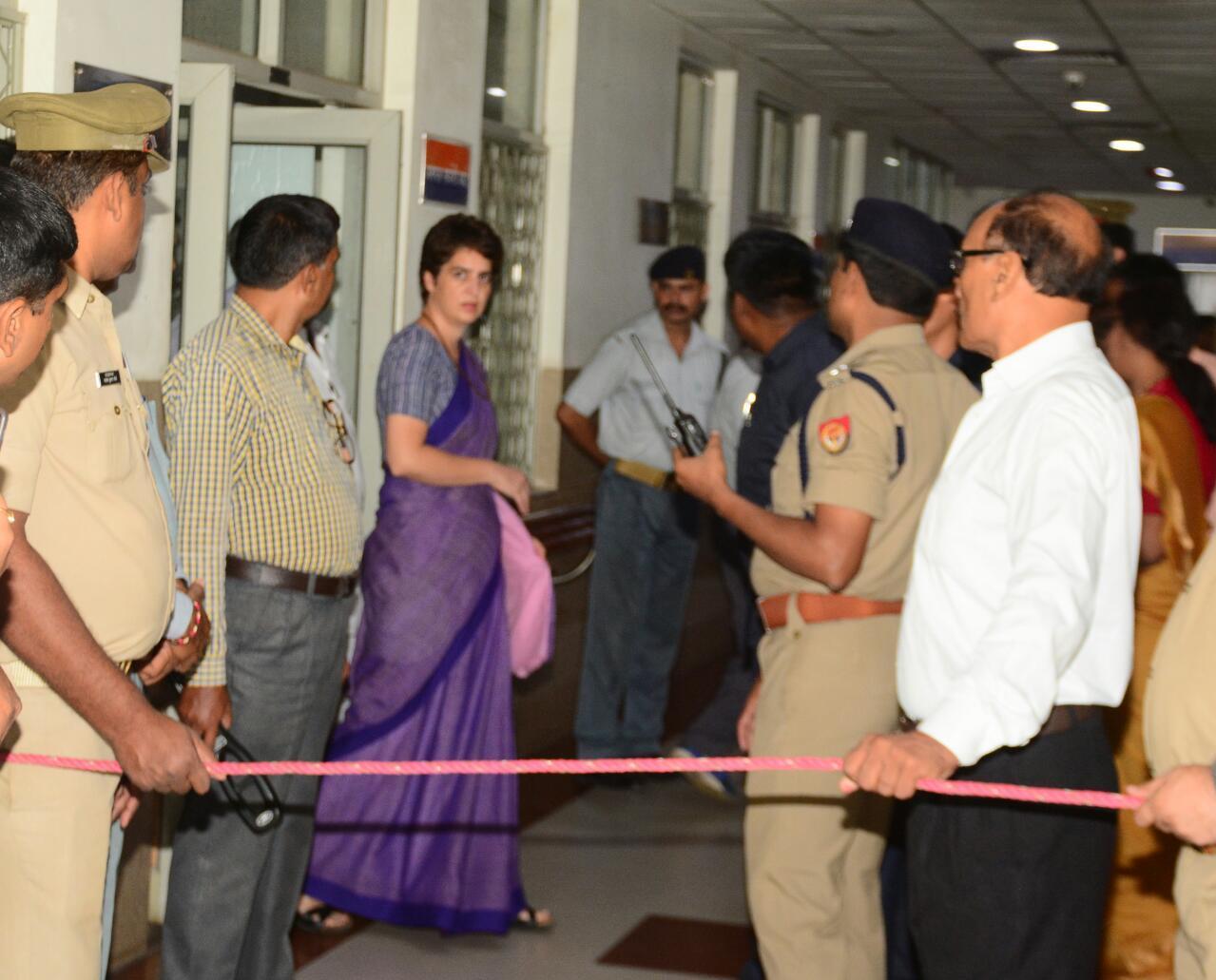 नई दिल्ली से वाराणसी आने वाले इंडिगो एयरलाइंस के विमान से प्रियंका गांधी वाड्रा सुबह 9:50 बजे वाराणसी एयरपोर्ट पहुंचीं। प्रियंका गांधी वाड्रा ने बाबतपुर स्थित लाल बहादुर शास्त्री एयरपोर्ट पर पहुंचते ही कांग्रेस कार्यकर्ताओं से मुलाकात की और एयरपोर्ट से वह सीधा ट्रामा सेंटर रवाना हो गईं। दरअसल प्रियंका गांधी सोनभद्र नरसंहार में गंभीर रुप से घायलों से मिलने ट्रामा सेंटर पहुंचीं। प्रियंका के पहुंचने से पहले ट्रामा सेंटर छावनी में तब्दील कर दिया गया और सुरक्षा व्‍यवस्‍था कड़ी कर दी गई। हादसे में घायल दिनेश को देखकर उन्‍होंने चोट के बारे में पूछा और हालचाल लिया।
