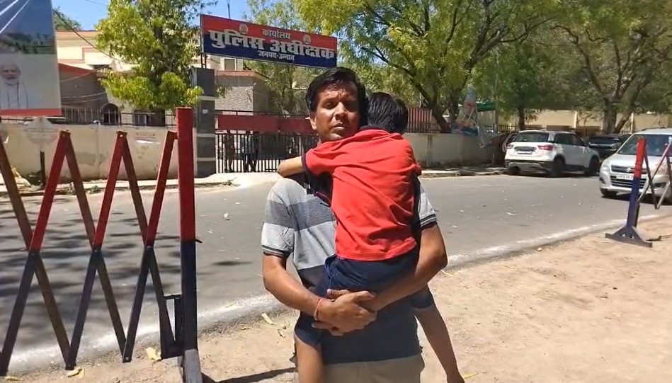 मासूम बेटे के साथ एसपी कार्यालय पहुंचा पीड़ित शिक्षक