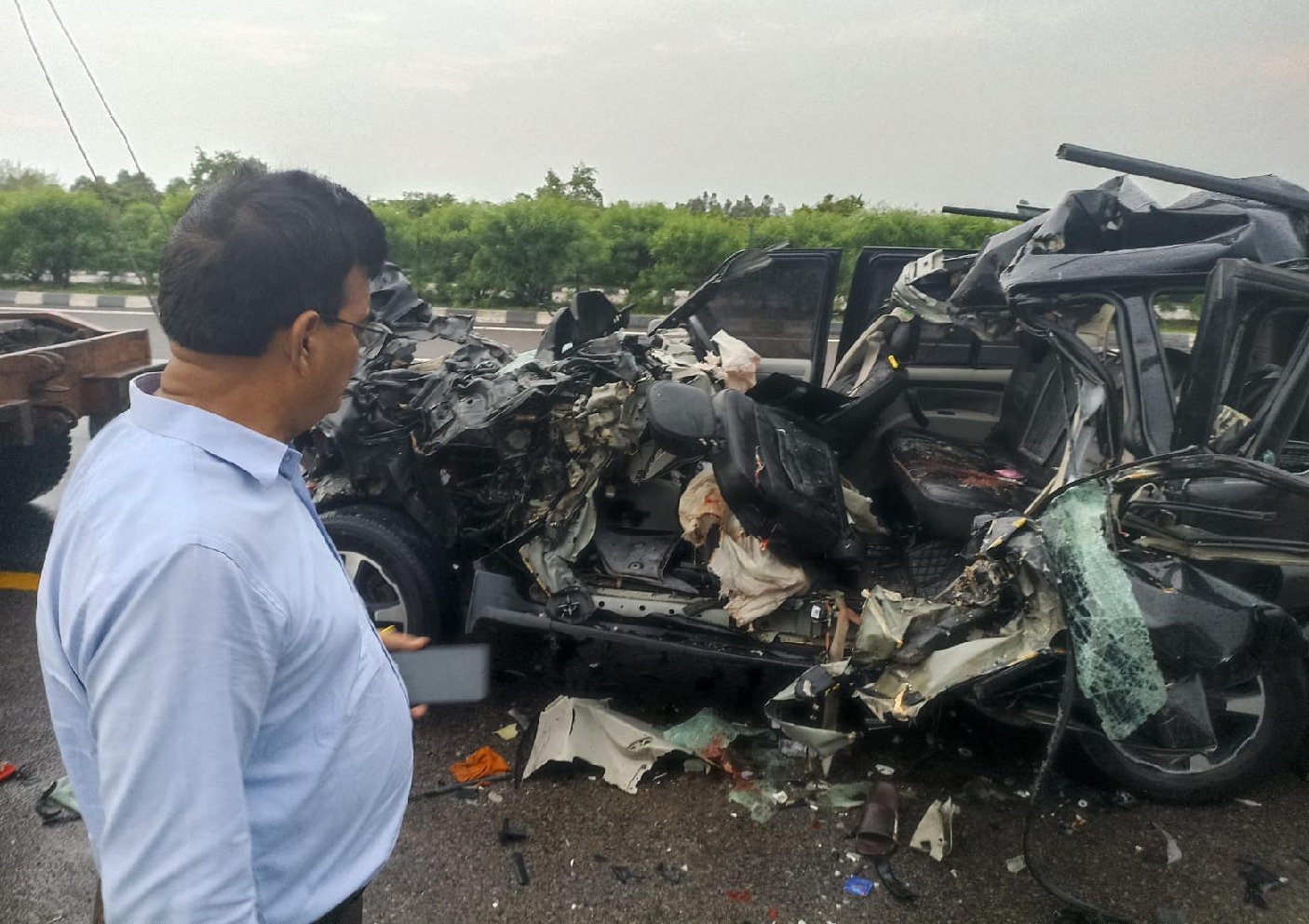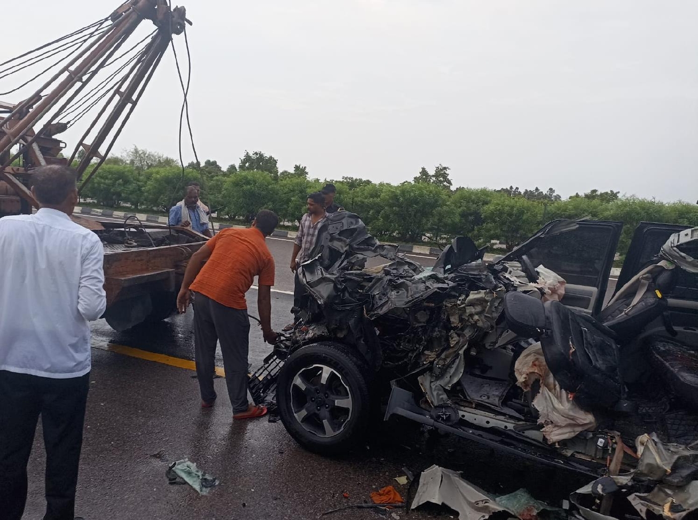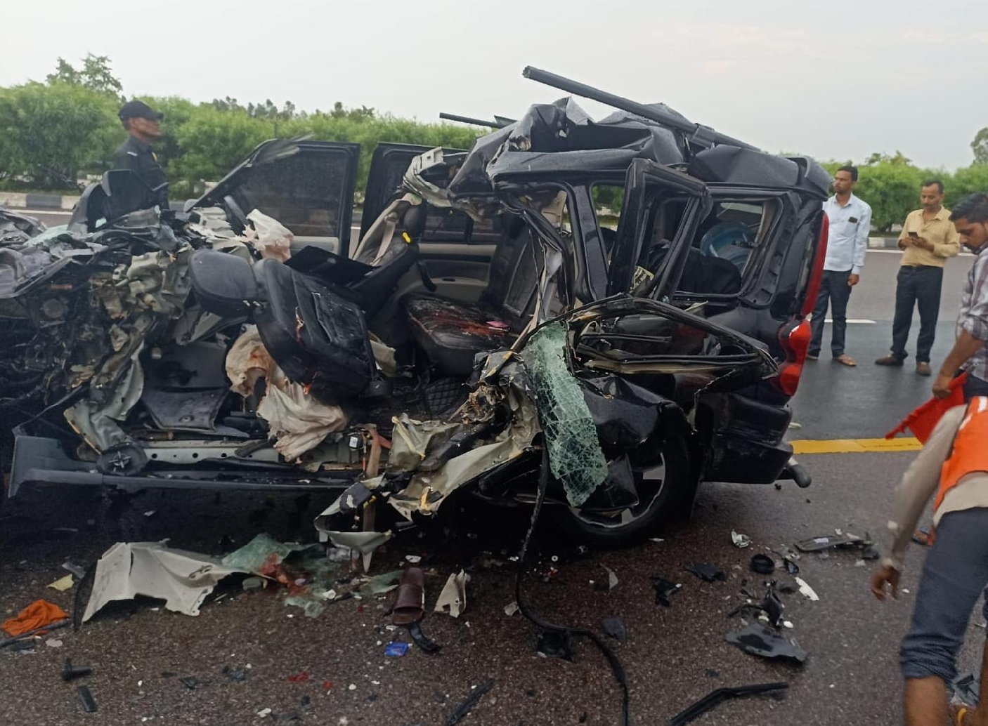 एक घायल हो गया। उसे सीएचसी से जिला अस्पताल रेफर किया गया है। जिस तरह से स्कार्पियो क्षतिग्रस्त हुई, उससे 120 किमी से ऊपर की रफ्तार होने व वर्षा होने के बीच झपकी आने से हादसा होने का अनुमान है। तेज वर्षा के बीच लखनऊ रजिस्ट्रेशन नंबर की स्कार्पियो एक्सप्रेसवे पर कार लेन से आगरा से लखनऊ की ओर जा रही थी। तभी हादसा हो गया। कार की छत पीछे तक टुकड़ों में बंट गई।