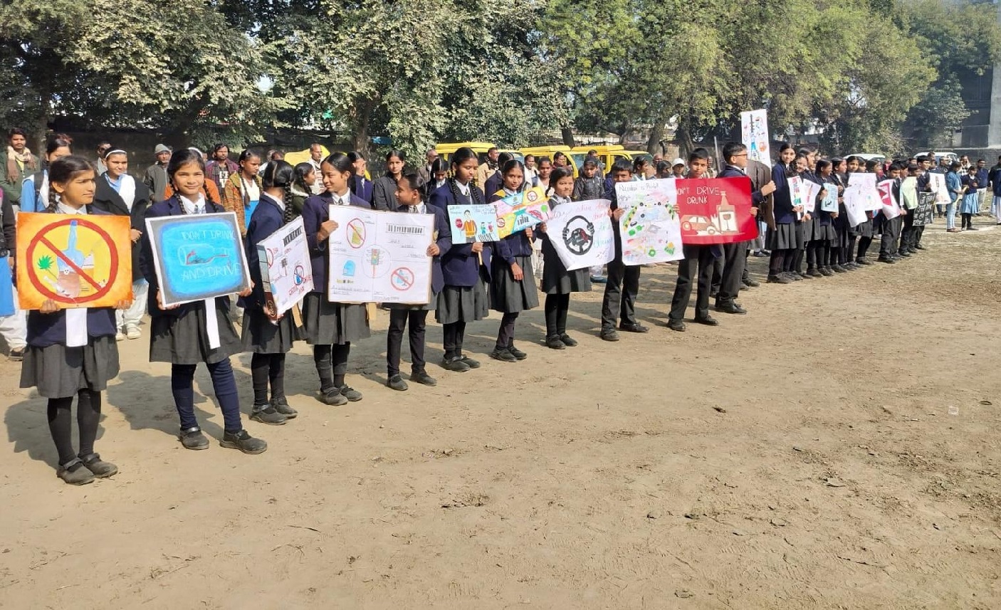 छात्र-छात्राओं ने बनाई मानव शृंखला, ट्रैफिक नियमों के प्रति किया जागरूक
