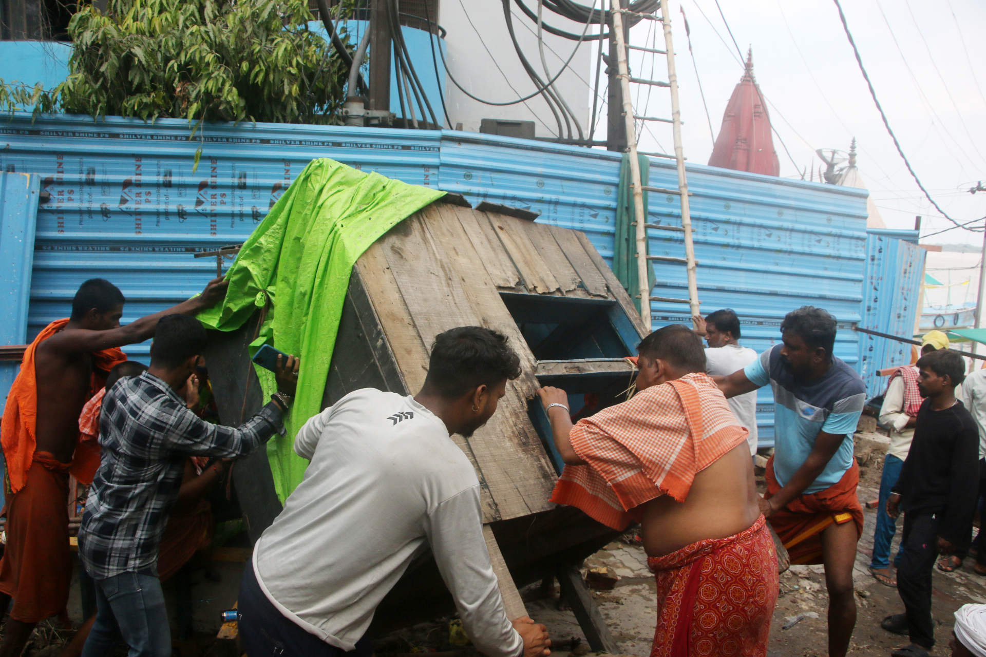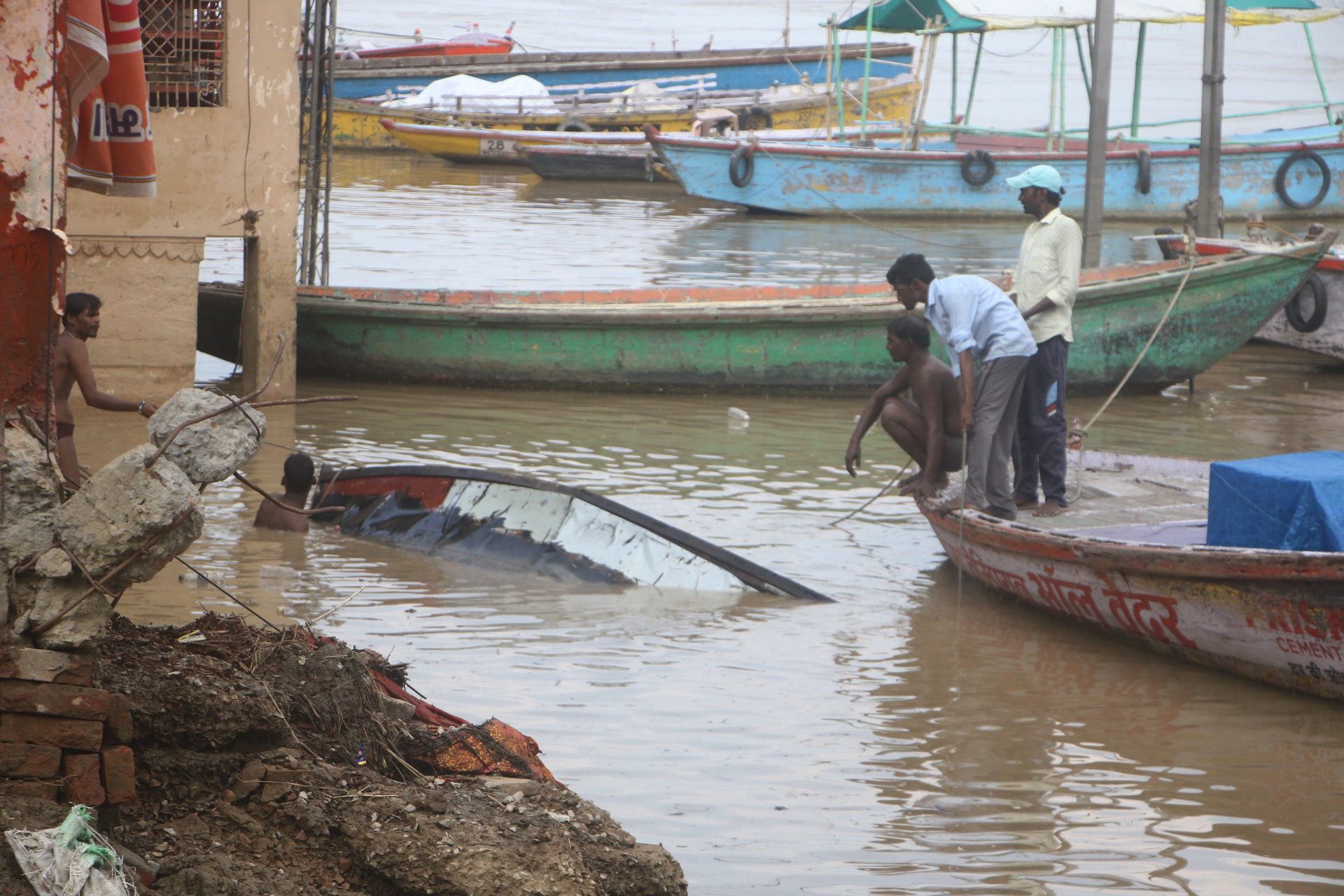 हरिश्चंद्र घाट पर रहने वाले बहादुर का कहना है कि सामान्य दिनों की तरह ही घाट पर शवों का अंतिम संस्कार चल रहा था। बाढ़ के चलते नौका संचालन बंद होने से नाविक गेस्ट हाउस के पास ही अपनी नावों को बांधे हुए थे।