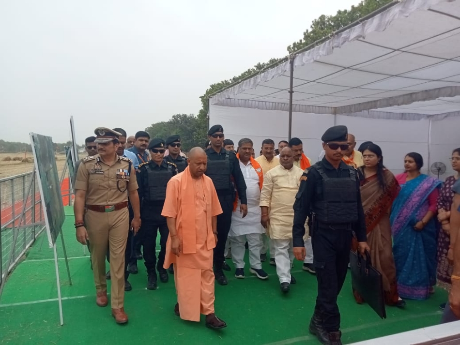 मुख्यमंत्री के आगमन पर मंडलायुक्त कौशलराज शर्मा, डीएम एस.राजलिंगम, पुलिस कमिश्नर मोहित अग्रवाल, जिला पंचायत अध्यक्ष पूनम मौर्या, भाजपा जिलाध्यक्ष/एमएलसी हंसराज विश्वकर्मा, विधायक सुशील सिंह, एमएलसी धर्मेन्द्र राय, अदिति पटेल, डा.महेंद्र पटेल, प्रवीण सिंह गौतम, अखंड प्रताप सिंह, शैलेश पांडेय, अरविंद प्रधान, प्रधान प्रतिनिधि शकील अहमद आदि पहुंचे हुए थे।सुरक्षा के बाबत चारो ओर पुलिस फोर्स लगी रही।
